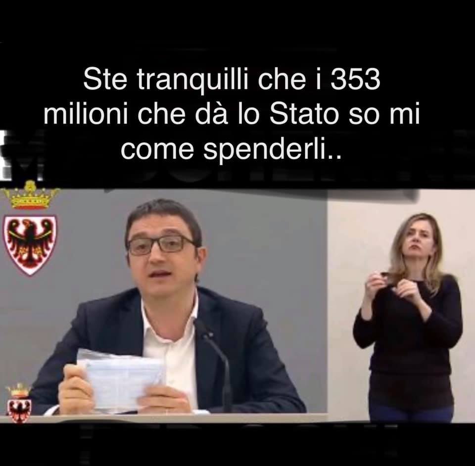 Nella graduatoria degli atti istituzionalmente molto gravi compiuti dalla giunta leghista, questo si colloca certamente ai primi posti. Dallo Stato italiano arrivano in due tranche (136+217) 353 milioni di euro alla Provincia autonoma di Trento. I primi 136 erano stati inseriti nella proposta di assestamento di bilancio in discussione in consiglio provinciale. Nei giorni scorsi il Presidente Fugatti ha detto che gli altri 217 milioni non sarebbero stati messi ora a bilancio in entrata (perché ancora non sanno come spenderli), mentre Bolzano li ha inseriti, avendo le idee chiare su come utilizzarli. Infatti in ogni ordinamento statale occidentale funziona così: l’esecutivo propone come allocare le risorse – tot risorse sulla scuola, …