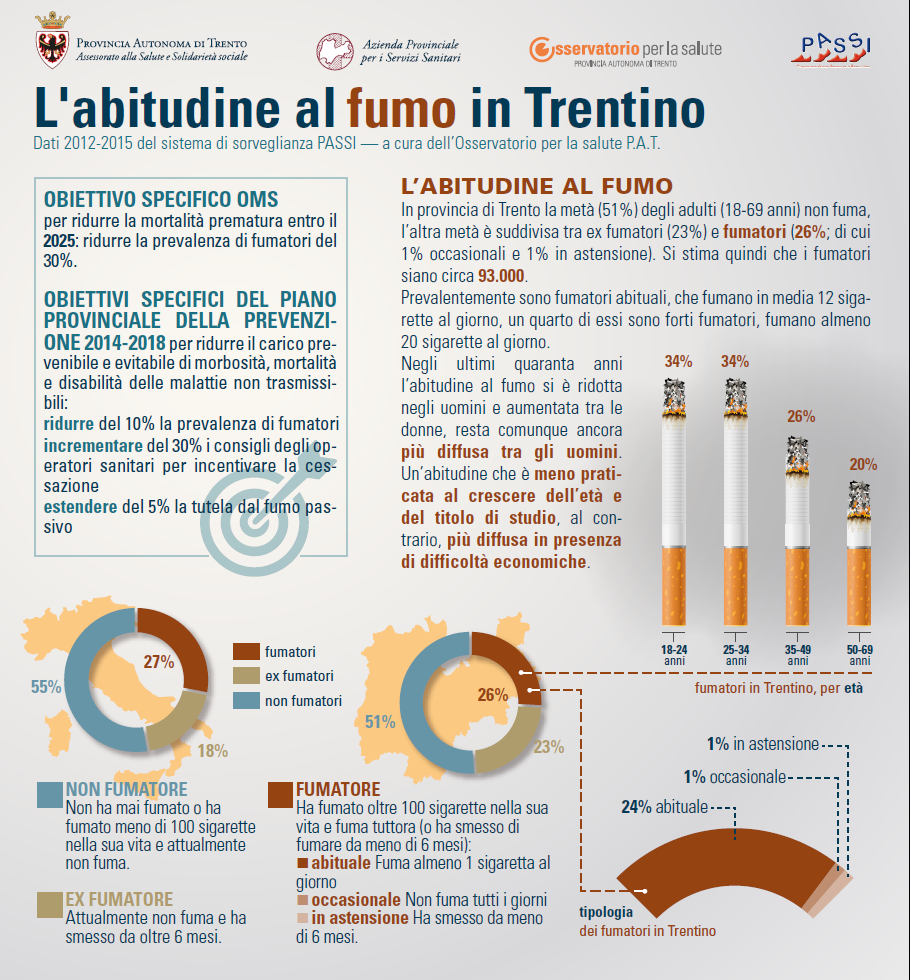 Ecco la fotografia sull’abitudine al fumo in provincia di Trento nel periodo 2012-2015.