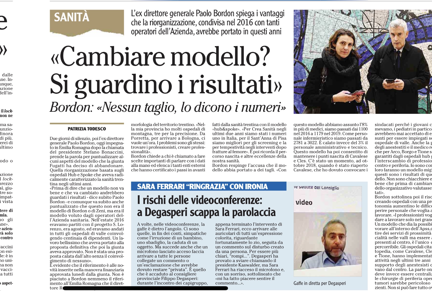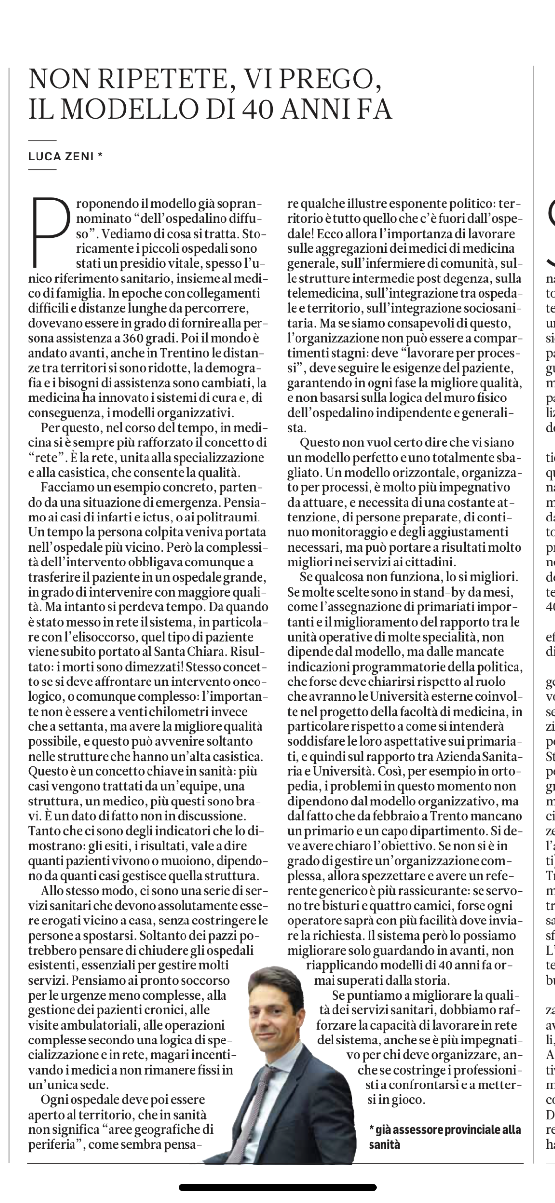 Così, per esempio in ortopedia, i problemi in questo momento non dipendono dal modello organizzativo, ma dal fatto che da febbraio a Trento mancano un primario e un capo dipartimento.