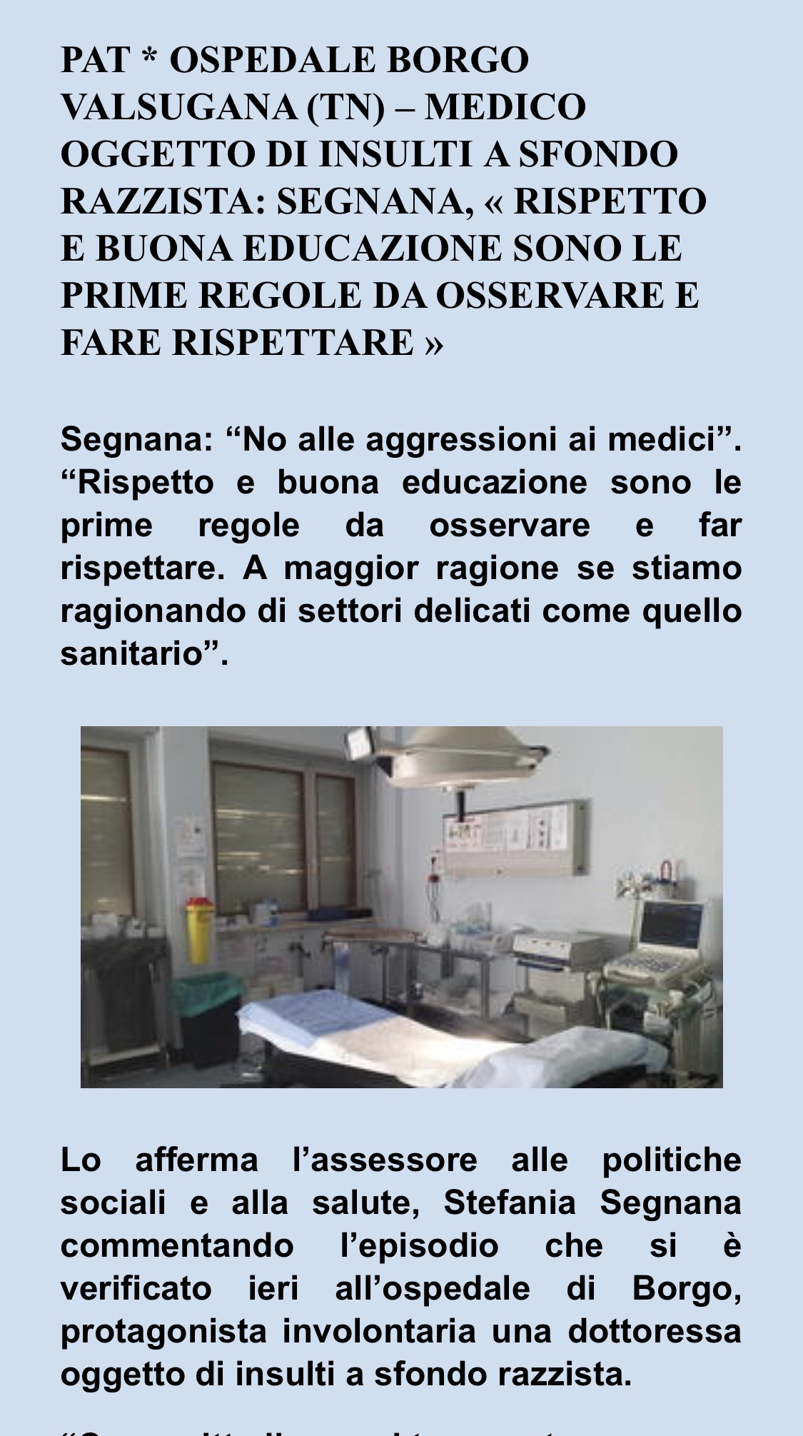 In questo contesto fanno soltanto arrabbiare le parole di chi dovrebbe rappresentare le istituzioni e che invita, commentando gli insulti razzisti alla dottoressa trentina, “all’educazione e al rispetto”: ma stiamo scherzando?