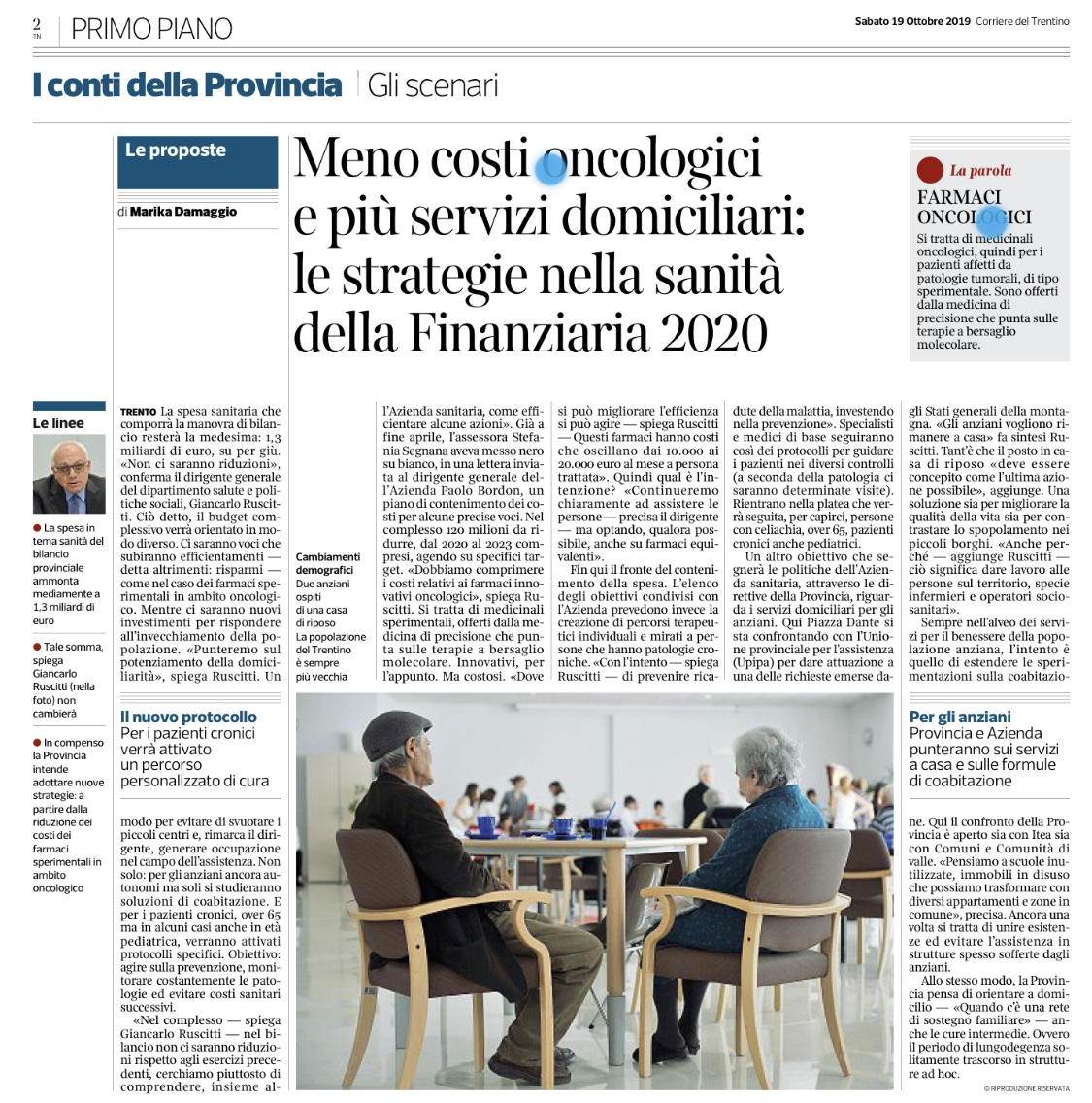 Il 29 maggio scorso, il Consiglio della Provincia autonoma di Trento approvava il dispositivo di una mia proposta di risoluzione in ambito sanitario. Nello specifico, a seguito di annunciati tagli in determinati settori della sanità, l’Aula impegnava formalmente la Giunta, ad avviare un confronto con le organizzazioni sindacali mediche e delle professioni sanitarie, oltre che con i rappresentanti delle associazioni dei malati, per condividere eventuali percorsi di razionalizzazione; è comminava all’Esecutivo provinciale di considerare la lotta al cancro come una priorità assoluta e dunque, nel rispetto della normativa sull’appropriatezza e sulla responsabilità del medico rispetto al percorso terapeutico, disponeva di “non individuare l’area oncologica come oggetto di risparmio di spesa”.