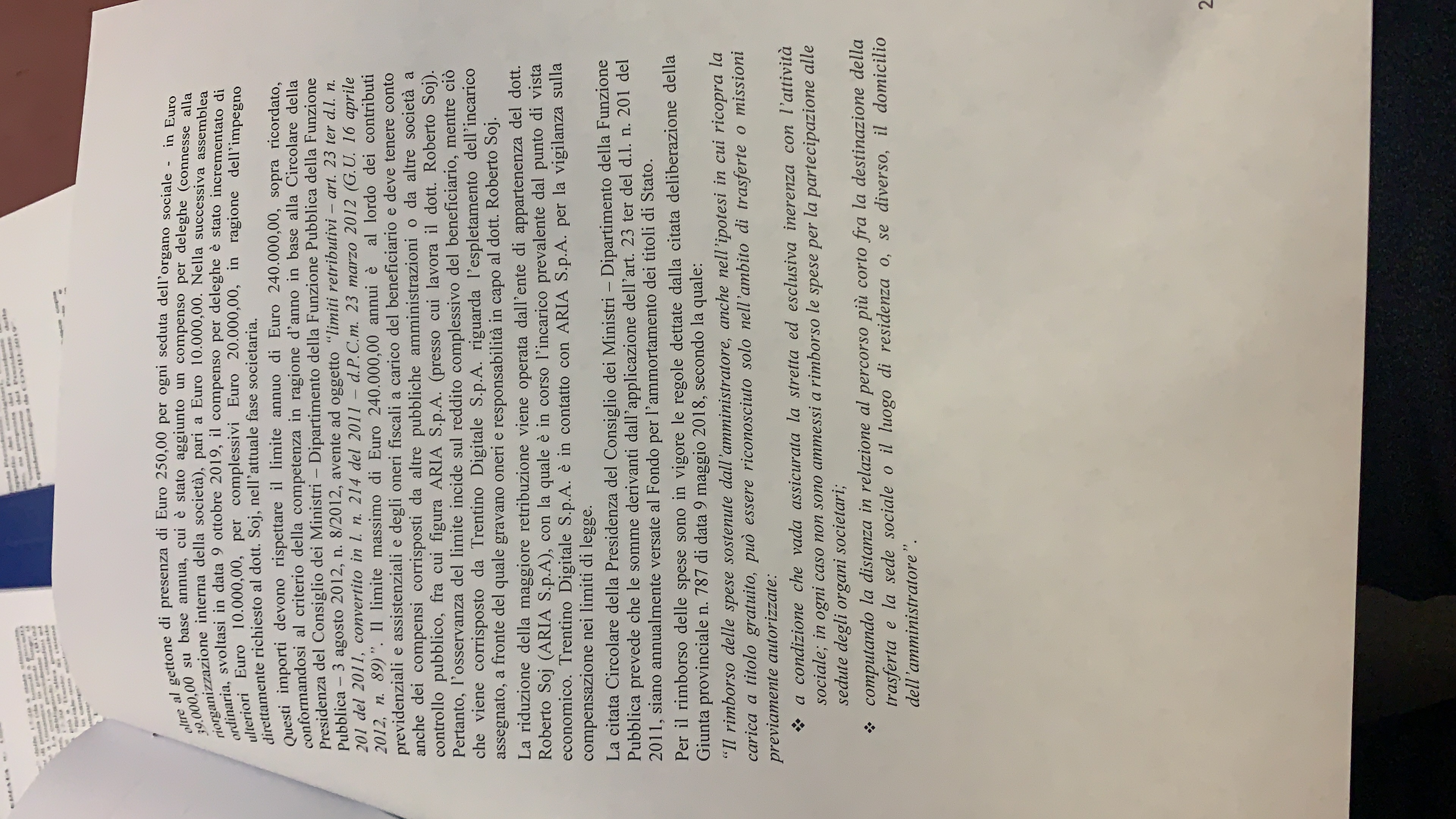 - da parte del Presidente di Trentino Digitale, che in quanto rappresentante legale della società aveva il dovere di segnalare il raggiungimento del tetto, evitando alla società un esborso non dovuto;